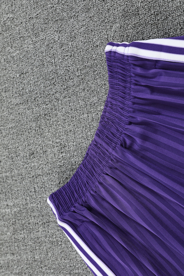 - Spalle: decorate con le iconiche tre strisce Adidas in viola, che scorrono lungo la cucitura.